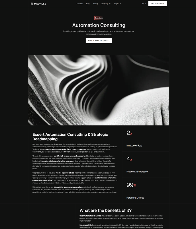 - Audit & Consulting: Identify weaknesses in your development processes, combat technical debt, implement best practices, and provide organizational and staffing advice.